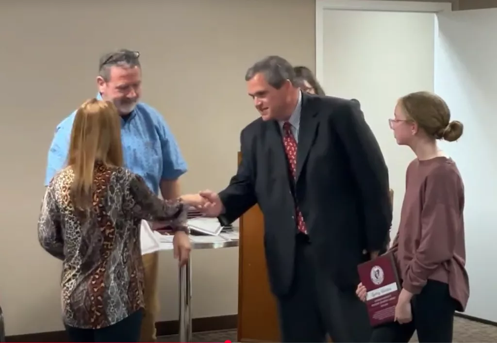 BISD Deputy Superintendent Liesa Land introduced recognitions of the Superintendent’s Student Advisory Cabinet (SSAC) members along with the teachers they selected as having the most significant and lasting impact on their lives. Every year, campuses provide two names of students from grades six through twelve to serve on the cabinet. These students meet with BISD Superintendents once a month over lunch and discuss a variety of topics to gather valuable firsthand input from a student’s perspective. The students were asked to provide the name of a favorite teacher who had the most impact on them during their education at BISD. Dr. Young congratulated the students and their chosen teacher and presented each of them with a certificate recognizing their contributions