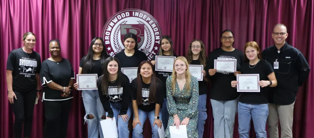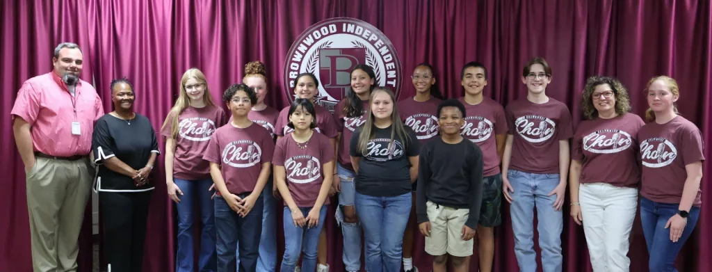 BMS Choir students were recognized for earning the top rating of “1” at the UIL Concert & Sight-Reading Contest. Honorees are pictured above with BMS Assistant Principal Jake Senkirik, BISD Trustee Thompson, and BMS Choir Director Kristi Wied.