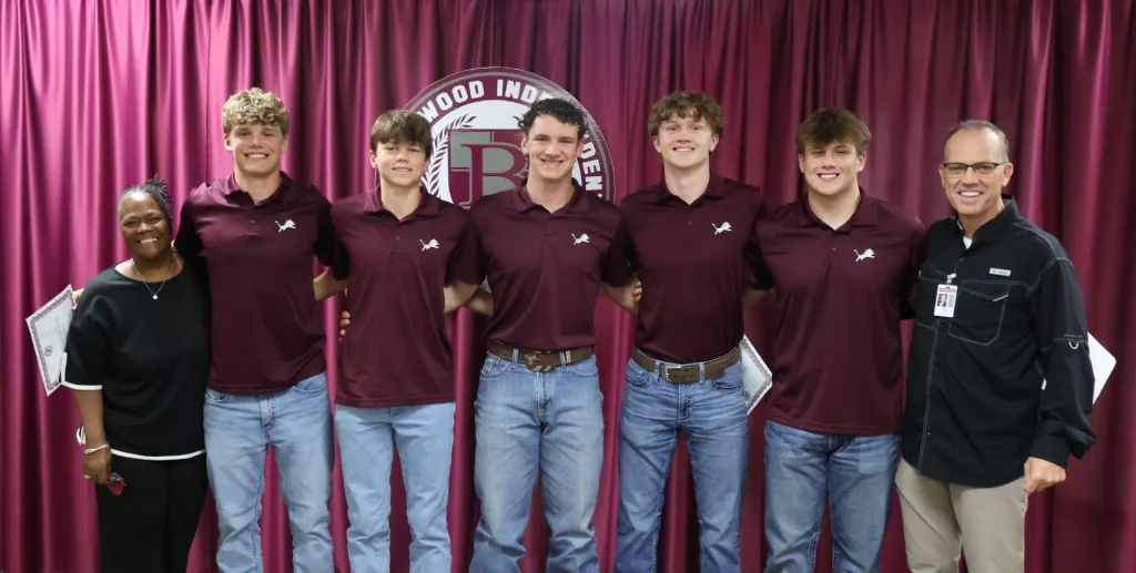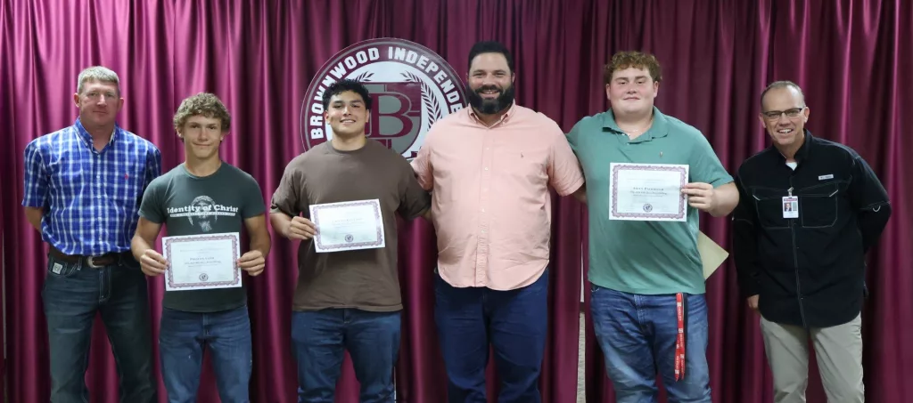 BHS Lions Powerlifting competitors were recognized for their season accomplishments including three varsity athletes who qualified and placed at Regionals. Honorees are pictured above with BISD Trustee Justin Posey, Coach Dex Dennard, and BISD Assistant Superintendent and Athletic Director Mitch Moore.