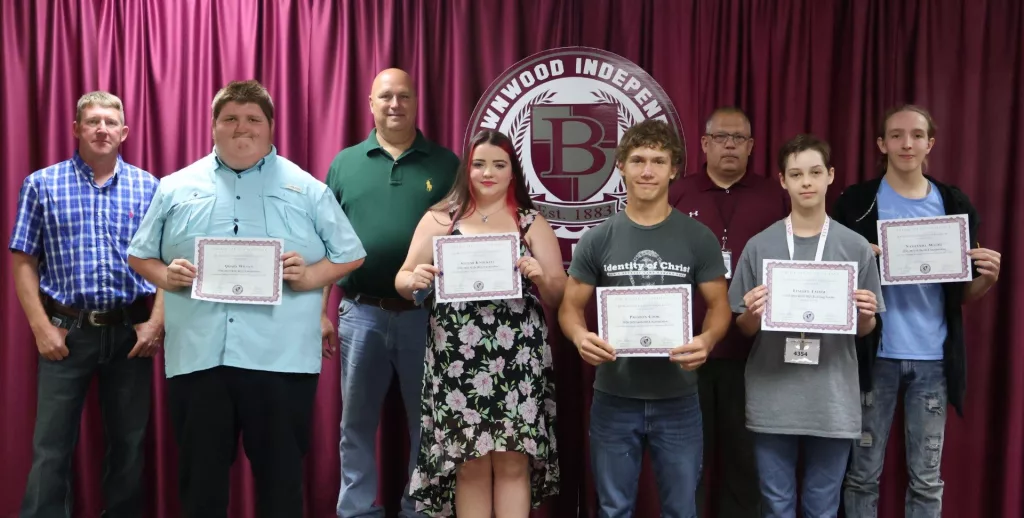 BHS Building Trades and Automotive students were recognized for their accomplishments in the State SkillsUSA competition. Honorees are pictured above with BISD Trustee Posey, Construction Trades Teacher Joe Baucom, and Auto Mechanics Teacher Randy Gross.