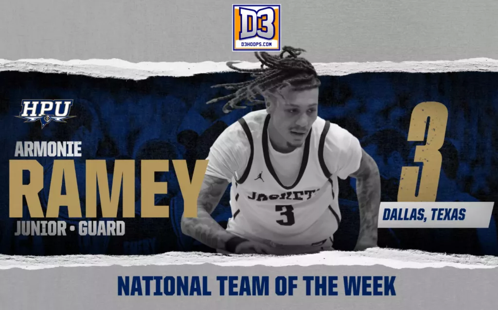 Howard Payne University announced Thursday that Yellow Jacket guard Armonie Ramey was named to D3hoops.com’s National Team of the Week (Week 11).