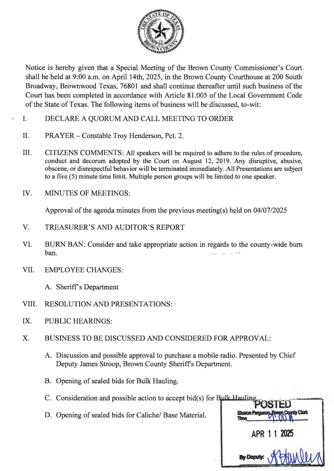 Special Brown County Commissioners meeting April 14 April 11, 2025 at 8:33 pm Updated: April 13th, 2025 at 9:31 am Derrick Stuckly Announcements Local News Tweet Share Reddit +1 Pocket LinkedIn
