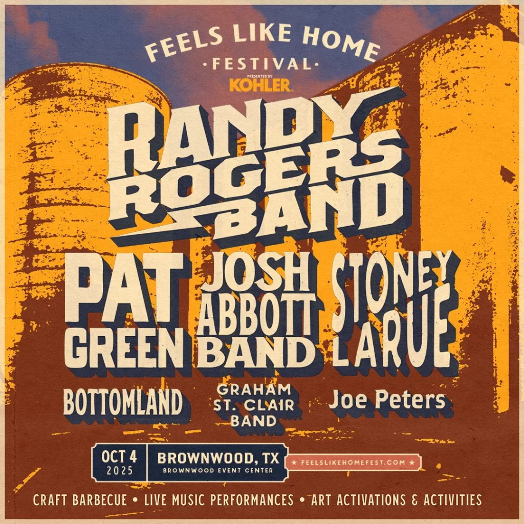 The City of Brownwood is excited to announce the new music lineup for the second annual Feels Like Home Festival returning Saturday, October 4th to the Brownwood Event Center in Brownwood, Texas.