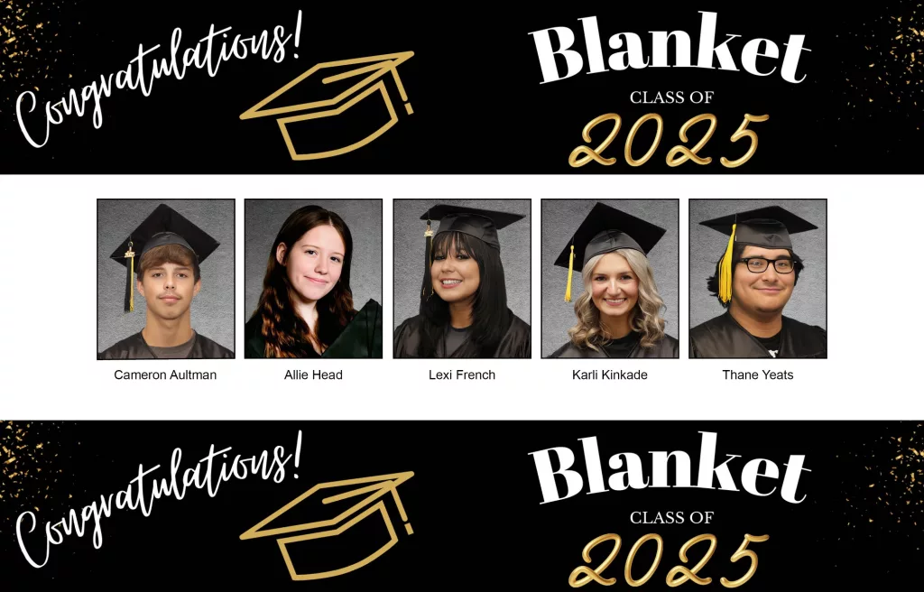 Blanket High School Class of 2025 May 16, 2025 at 8:12 am Derrick Stuckly Graduation 2025 Local News Tweet Share Reddit +1 Pocket LinkedIn