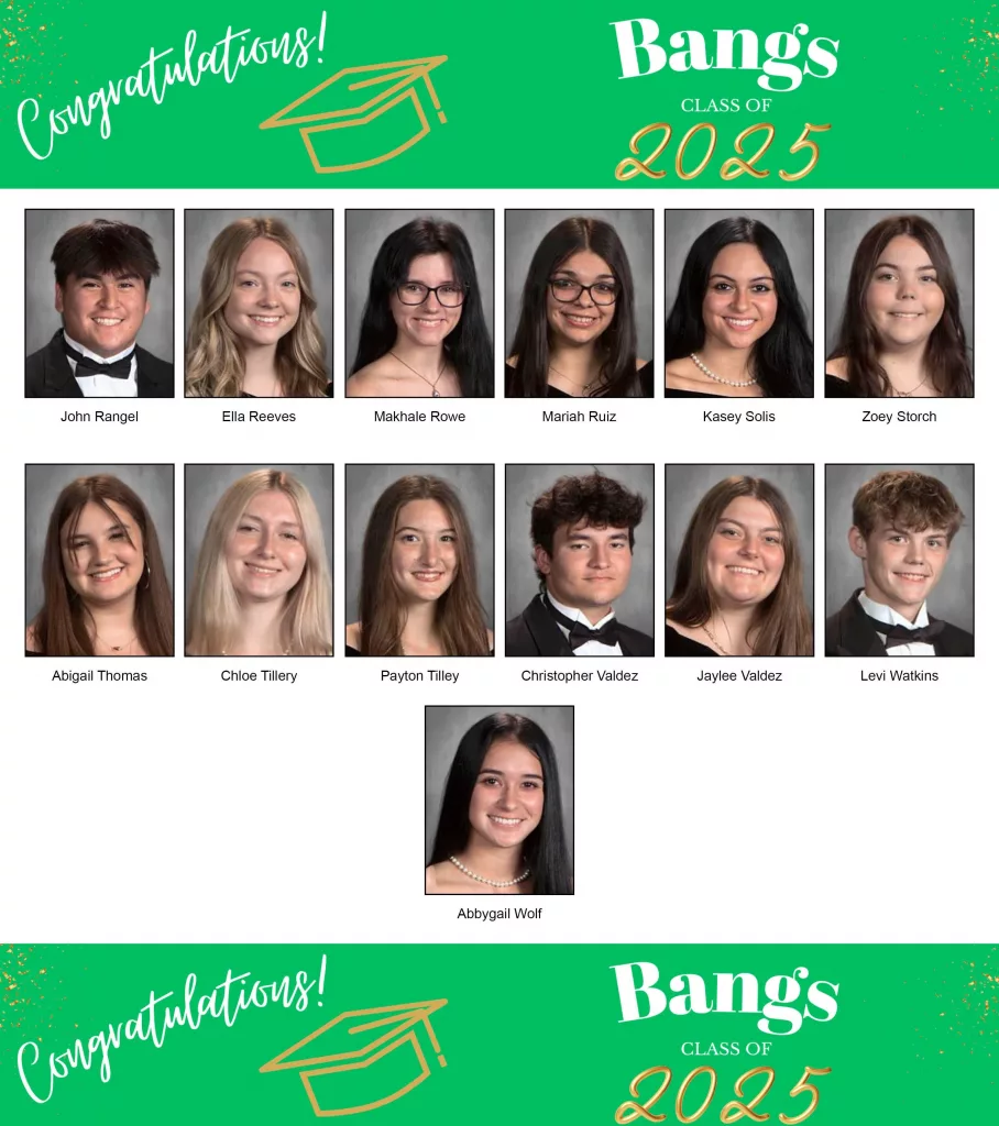 Bangs High School Class of 2025 May 22, 2025 at 8:10 am Updated: May 22nd, 2025 at 9:05 am Derrick Stuckly Graduation 2025 Local News Tweet Share Reddit +1 Pocket LinkedIn