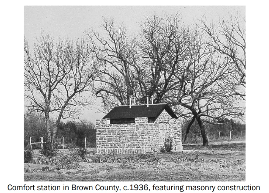 Brown County has several of these facilities still in use, including one at Ben Lednicky Park in Brownwood, right beside Chick-fil-A. The Lednicky Park honors Brownwood resident Ben Lednicky, who played an important role in designing roadside parks and pullovers throughout Texas. It contains two historical markers, one noting the contributions of Lednicky to Texas roadside park development. It says, “Lednicky Park is named in honor of Ben Lednicky, for his work on the roadside parks of Texas. Lednicky began his career with the Texas Highway Department after graduating from Texas A&M University in 1937. His career was dedicated to the development, design and construction of roadside parks and vegetation management. One of the first landscape architects employed by TxDOT, Lednicky assisted in developing the standard for roadside parks, vegetation conservation and erosion control that is used today. Examples of his work can be seen in parks throughout Texas from the Big Bend to the Panhandle. Lednicky retired in 1976 after 39 years of meritorious service.”