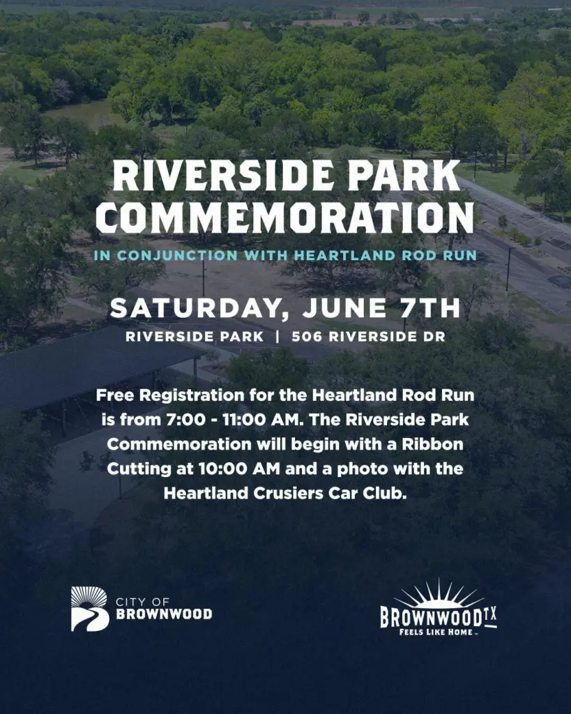 The City of Brownwood will host a ribbon cutting ceremony at 10:00 AM on Saturday, June 7 at Riverside Park to commemorate the completion of Phase I construction of the Riverside Park improvement project.