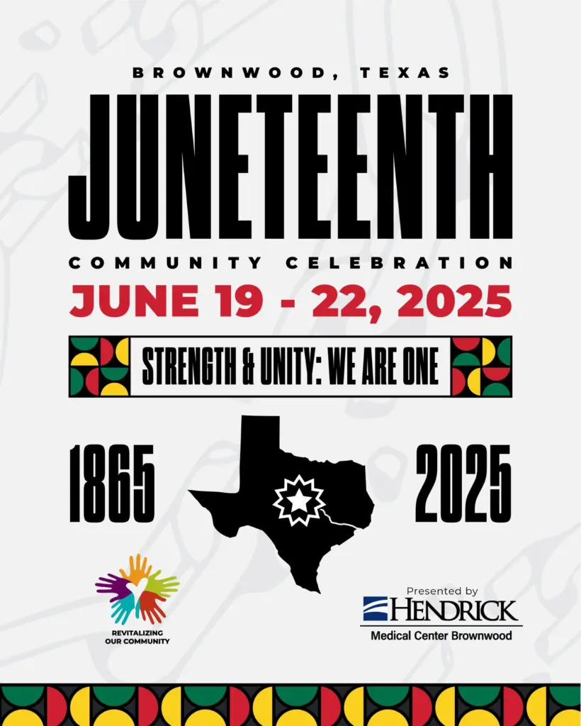 Revitalizing Our Community and the Juneteenth Committee are gearing up for the 2025 Juneteenth Community Celebration sponsored by Hendrick Medical of Brownwood. The celebration is scheduled for June 19th-22nd. Juneteenth is a federal holiday marking the day June 19th 1865, when the union soldiers landed in Galveston Bay, to inform all slaves that President Lincoln had signed the Emancipation Proclamation, ending slavery which freed all slaves.