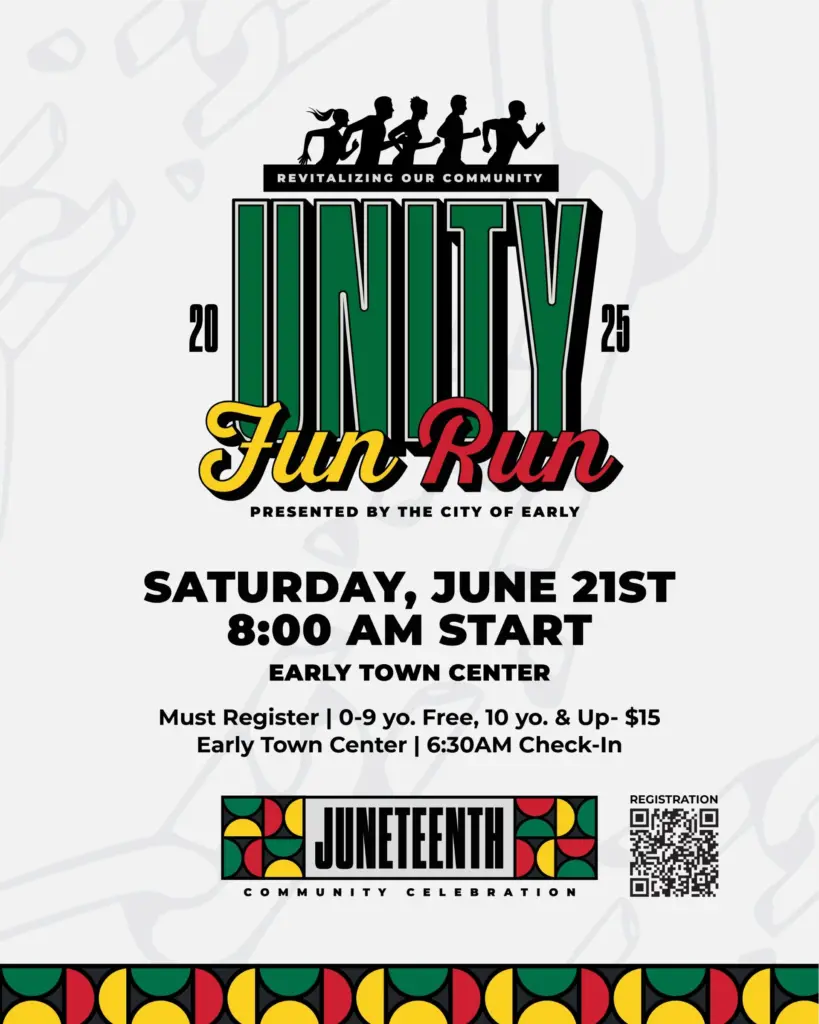 Saturday morning the committee has planned a 5k Fun Run, sponsored by the City of Early/MDD at the Early Town Center, cost is $15 and registration can be completed at https://runsignup.com/Race/TX/Early/ROCJuneteenthUnityFunRun