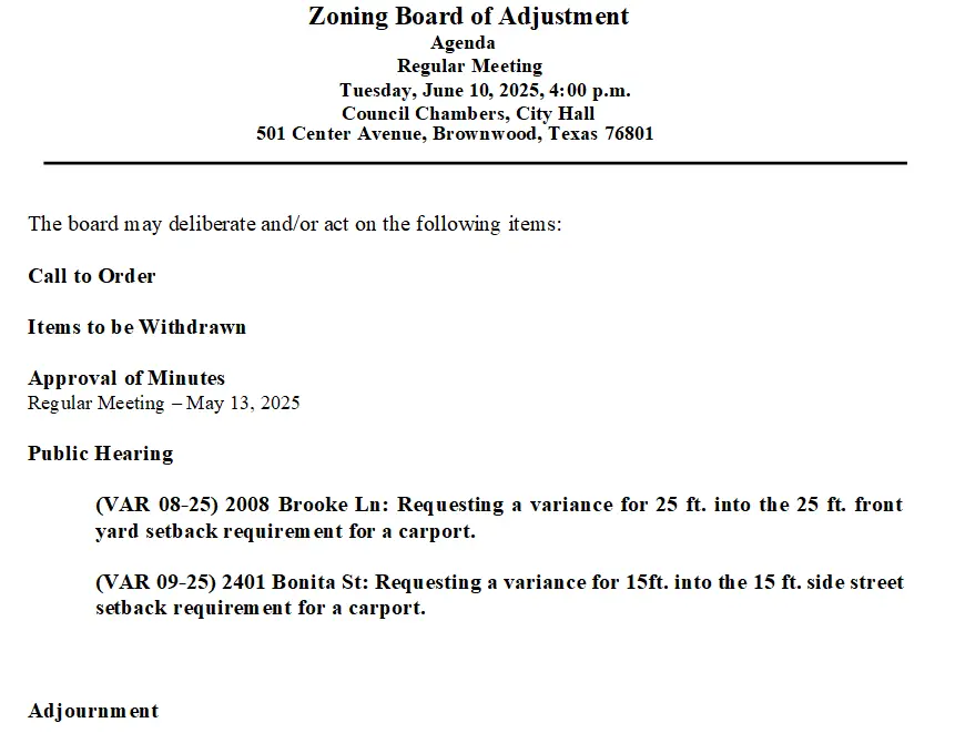 Zoning Board of Adjustment to hold June 10 meeting