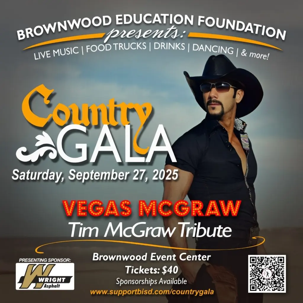 The Brownwood Education Foundation announced on social media its 2025 Country Gala will take place Saturday, Sept. 27 at the Brownwood Event Center.