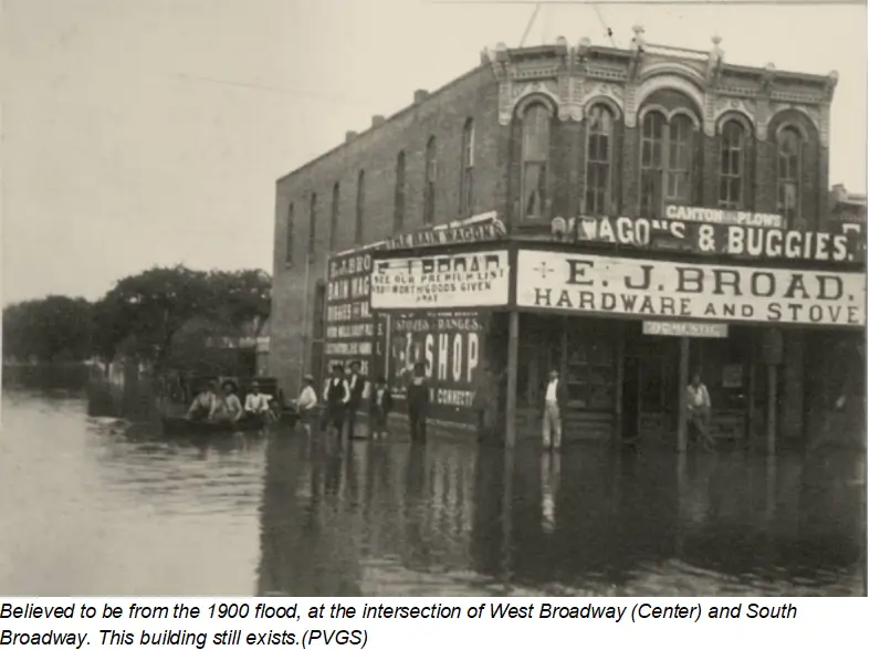 The flood of 1900, when Brownwood was fundamentally swallowed by Pecan Bayou, extended throughout most of the city. “The Pecan Bayou has had the largest overflow known since Brownwood became a frontier settlement,’ an article in the Galveston Tribune, dated Sept 25, 1900 reported. “The water rose six feet over any previous high water mark before it stopped. This statement is made on the authority of Messrs. Clay Parks and S.R. Coggin, two of Brownwood’s pioneers. The damage to the cotton crops along the Jim Ned valley can not be estimated with any certainty, but thousands of acres have been underwater for two days. J.R. Looney, a prominent merchant, says 5,000 to 7,000 bales will be lost. No loss of life has occurred so far as known. Many cattle and horses have doubtless been drowned, for the valley is from one to five miles wide, and all of it covered with swimming water,” the report stated. “Over 100 families have been forced out of their houses, and much of their effects are ruined from their long stay in the water. Nearly every team in Brownwood was kept busy all of Saturday night rescuing families. All day Sunday boats paddled through a portion of Center Avenue and West Broadway.”