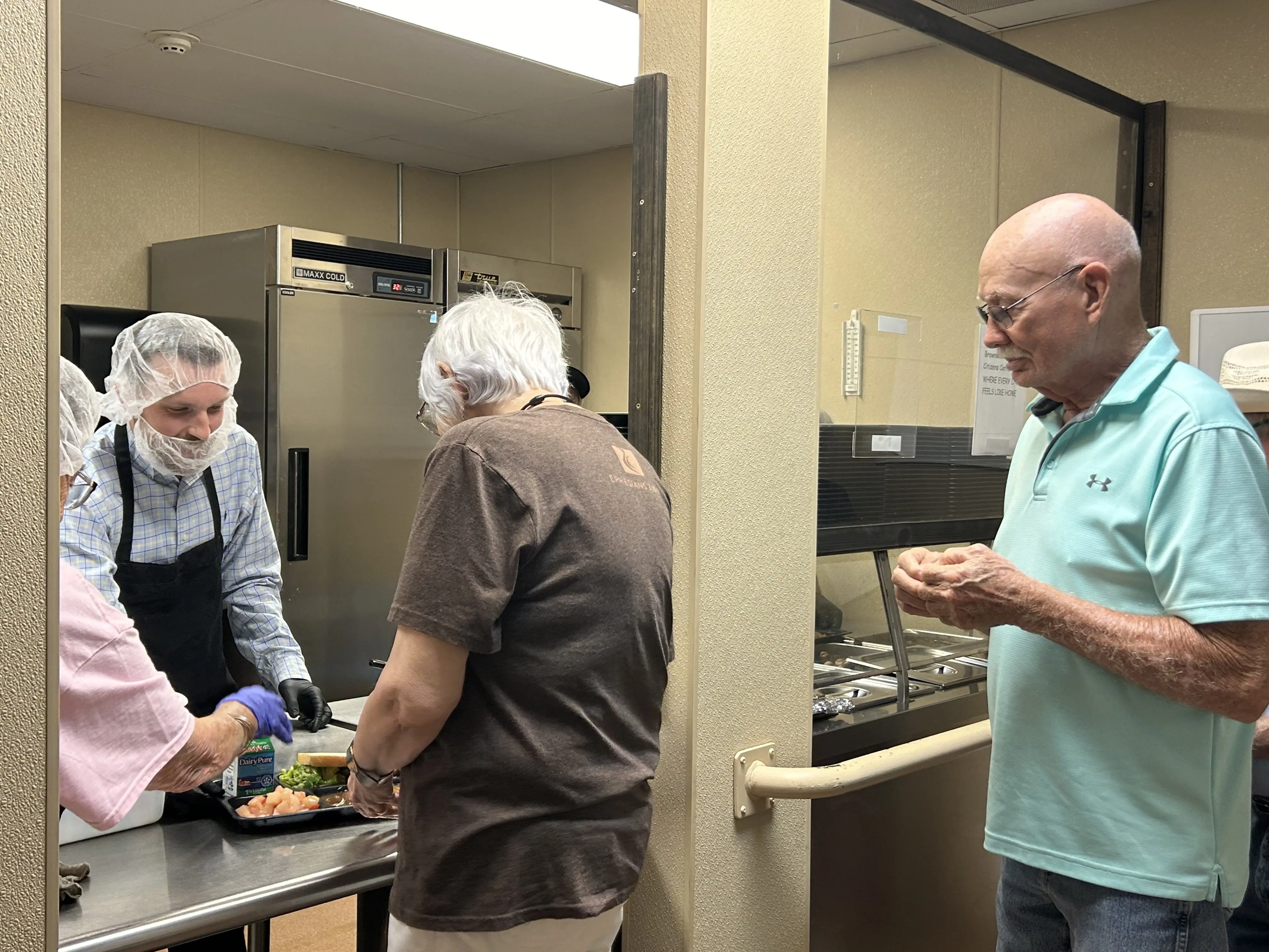 Brownwood City Manager Marshall McIntosh handed out lunch at the Senior Citizens Center on Thursday afternoon.