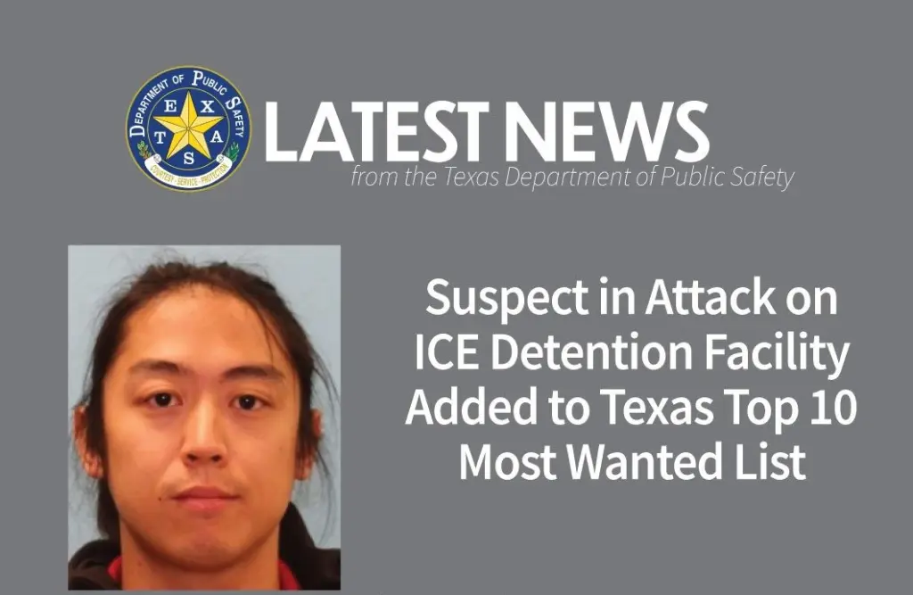 Benjamin Hanil Song, 32, is wanted for his alleged involvement in the July 4, 2025, attack on the United States Immigration and Customs Enforcement Detention Facility in Alvarado, Texas. During that attack, an Alvarado Police Officer was shot. Johnson County has now issued warrants for aggravated assault on a public servant, aiding terrorism and engaging in organized crime. A federal arrest warrant has also been issued in the United States District Court, Northern District of Texas, after Song was charged with attempted murder of a federal officer and discharging a firearm during, in relation to and furtherance of a crime of violence.