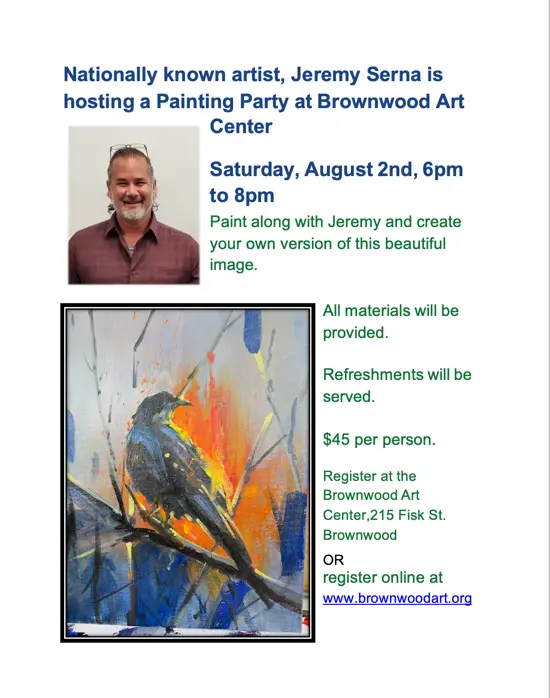 He will be back in Brownwood to host one of his popular painting parties on Saturday, August 2, at the Brownwood Art Center, 215 Fisk, from 6-8 pm. The cost is $45.