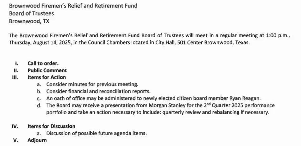 Firemen’s Relief and Retirement Fund meeting Aug. 14