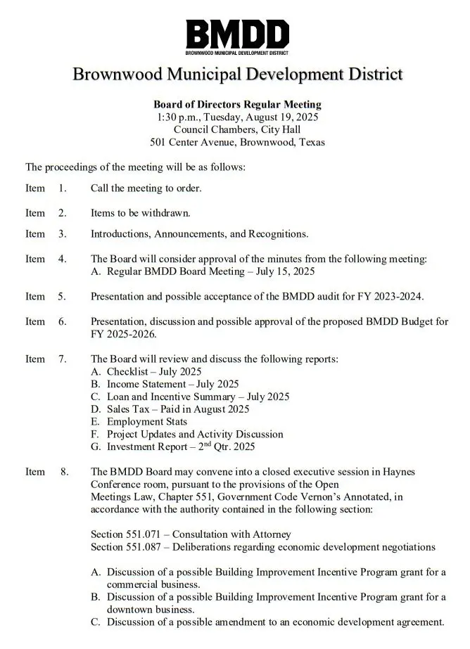 BMDD Board of Directors to meet Aug. 19 August 14, 2025 at 10:38 am Updated: August 15th, 2025 at 6:06 am Derrick Stuckly Business Local News Tweet Share Reddit +1 Pocket LinkedIn