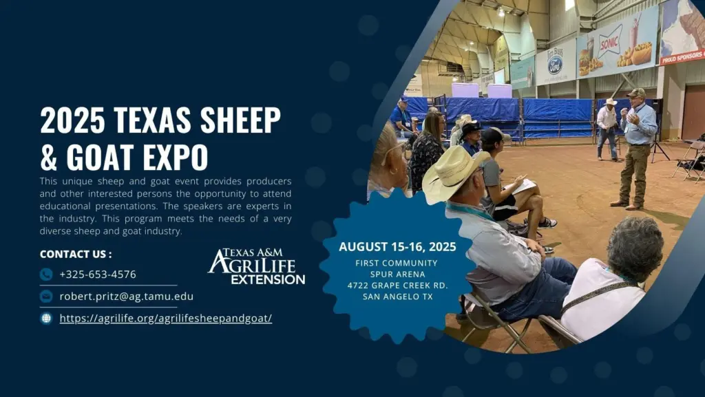 The event draws producers from across Texas, out of state, and as far away as Australia. It is the largest event of its type in Texas and one of the largest sheep and goat industry educational programs in the world.
