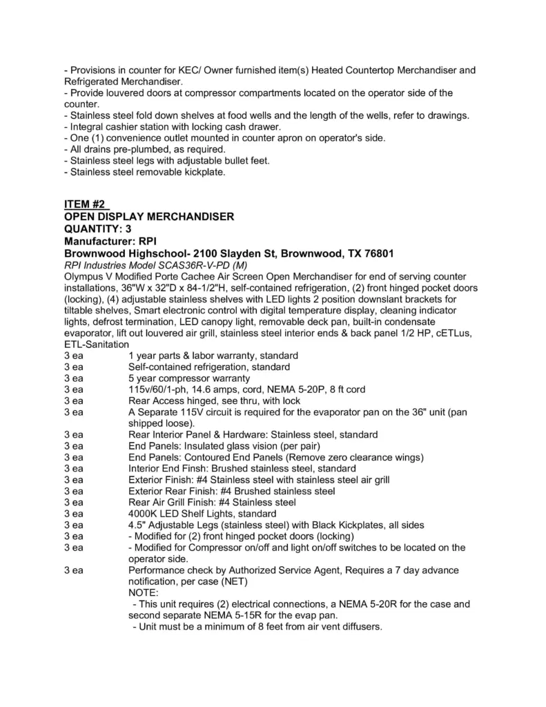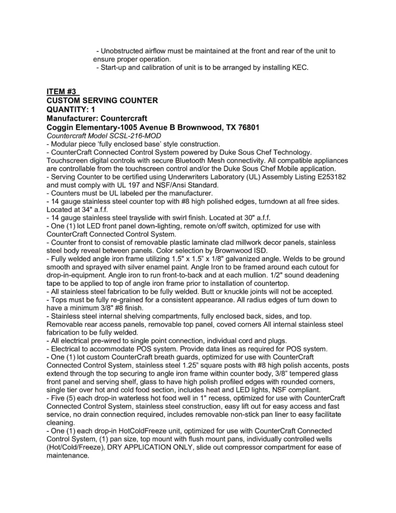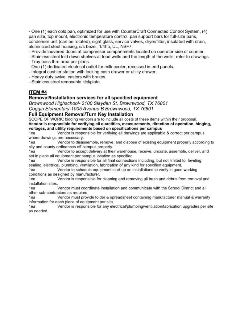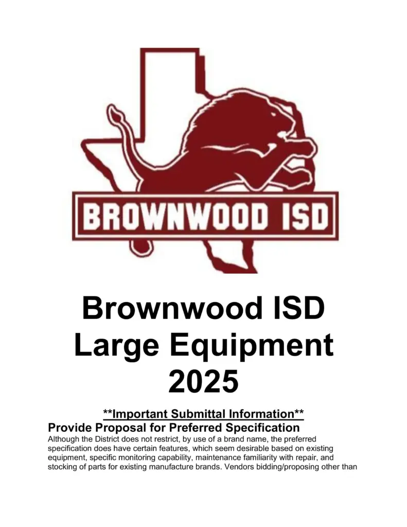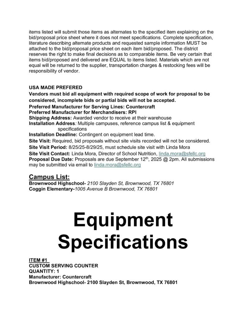 Brownwood ISD is requesting bids for Serving line equipment at Coggin Elementary and BHS.