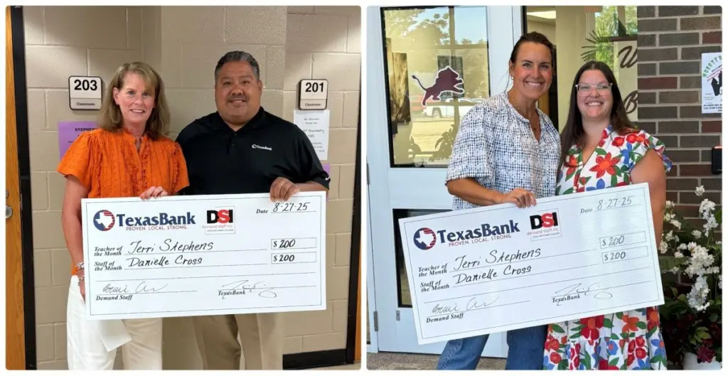 Brownwood High School (BHS) has recognized their Teacher and Staff Member of the Month for August 2025. Teacher Terri Stephens and staff member Danielle Cross were selected to receive the honor. The recognition includes a $200 check sponsored by TexasBank and Demand Staff, Inc.