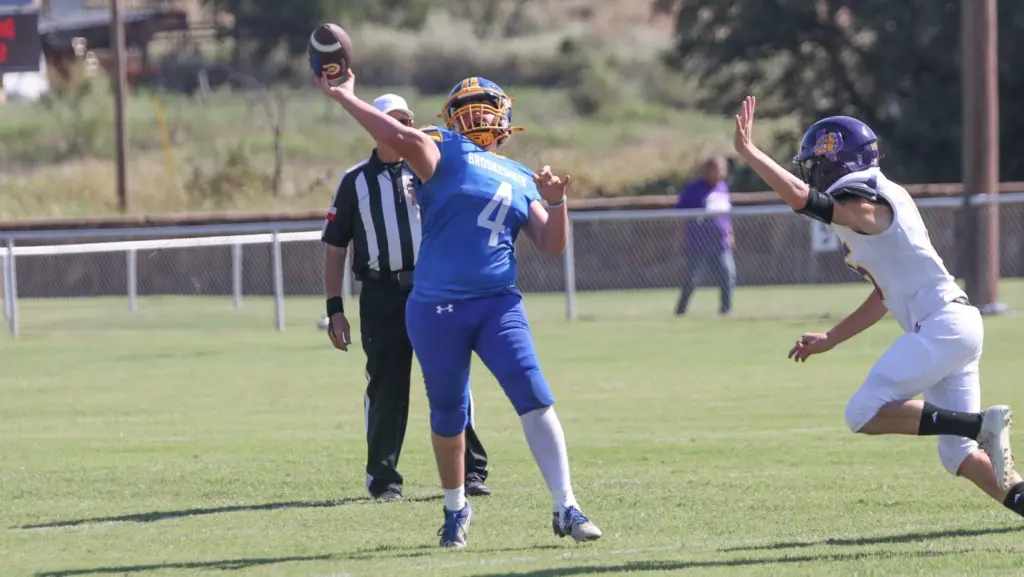 According to Dave Campbell’s Texas Football, Brookesmith is a 15-point favorite. The website sixmanfootball.com lists the Mustangs as a 44-point underdog.