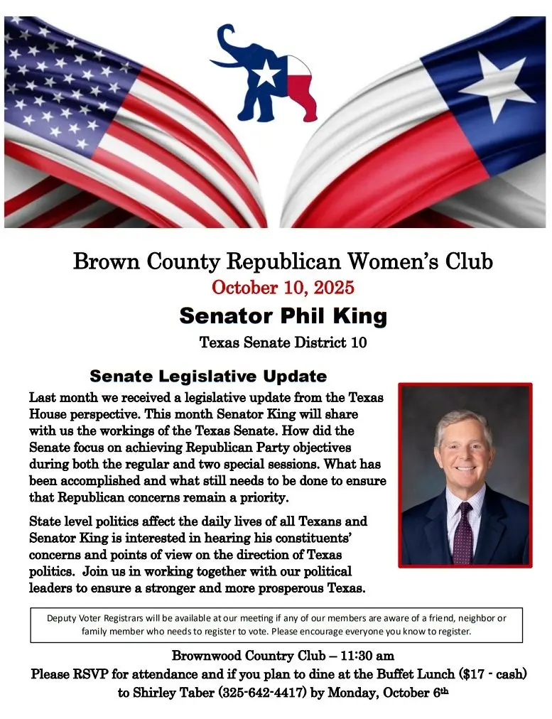 Senator Phil King to speak at Oct. 10 BCRW meeting September 26, 2025 at 11:50 am Derrick Stuckly Local News Tweet Share Reddit +1 Pocket LinkedIn