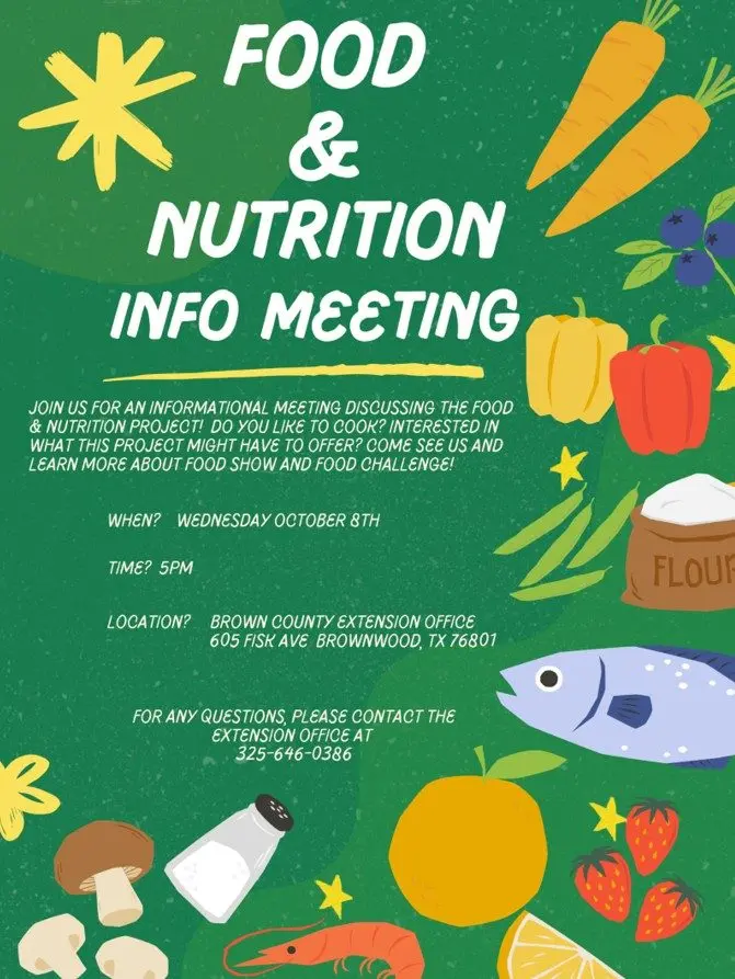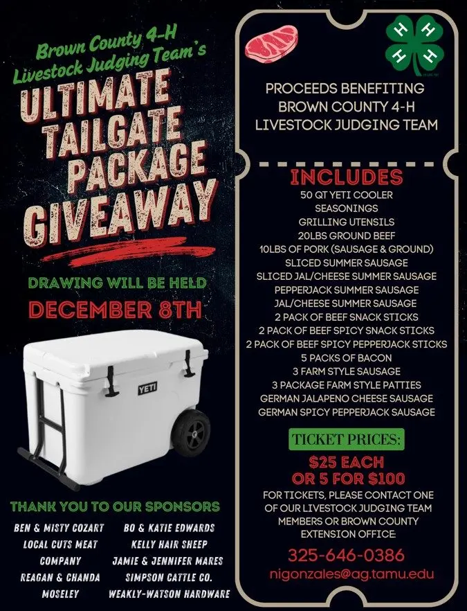 Call the Brown County Extension Office at 325-646-0386 for more information.