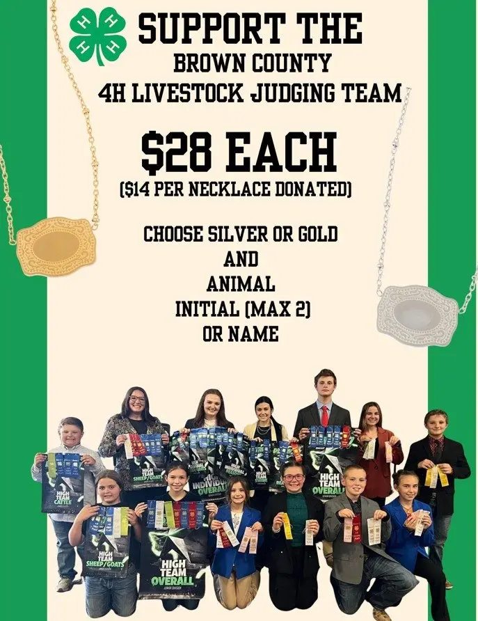 We’re raising money for the Brown County 4-H Livestock Judging Team and we’ve got the cutest necklace available right now!