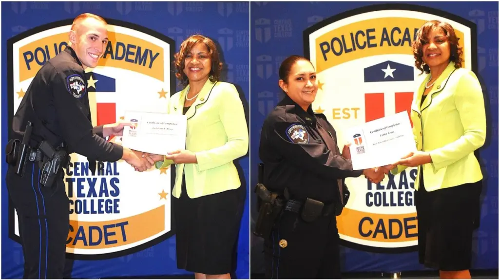 During the graduation ceremony, CTC Chancellor Dr. Michele J. Carter presented certificates and Chancellor’s Coins to each cadet, while Texas A&M University-Central Texas Police Chief Andrew Flores delivered the keynote address, encouraging the new officers to serve with integrity and resilience.