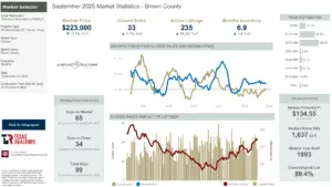 Brown County real estate sales in September, along with price per square foot, were up just a little bit compared to September 2024. This and other real estate sales information was released this week by the Heartland Association of Realtors. Details below.