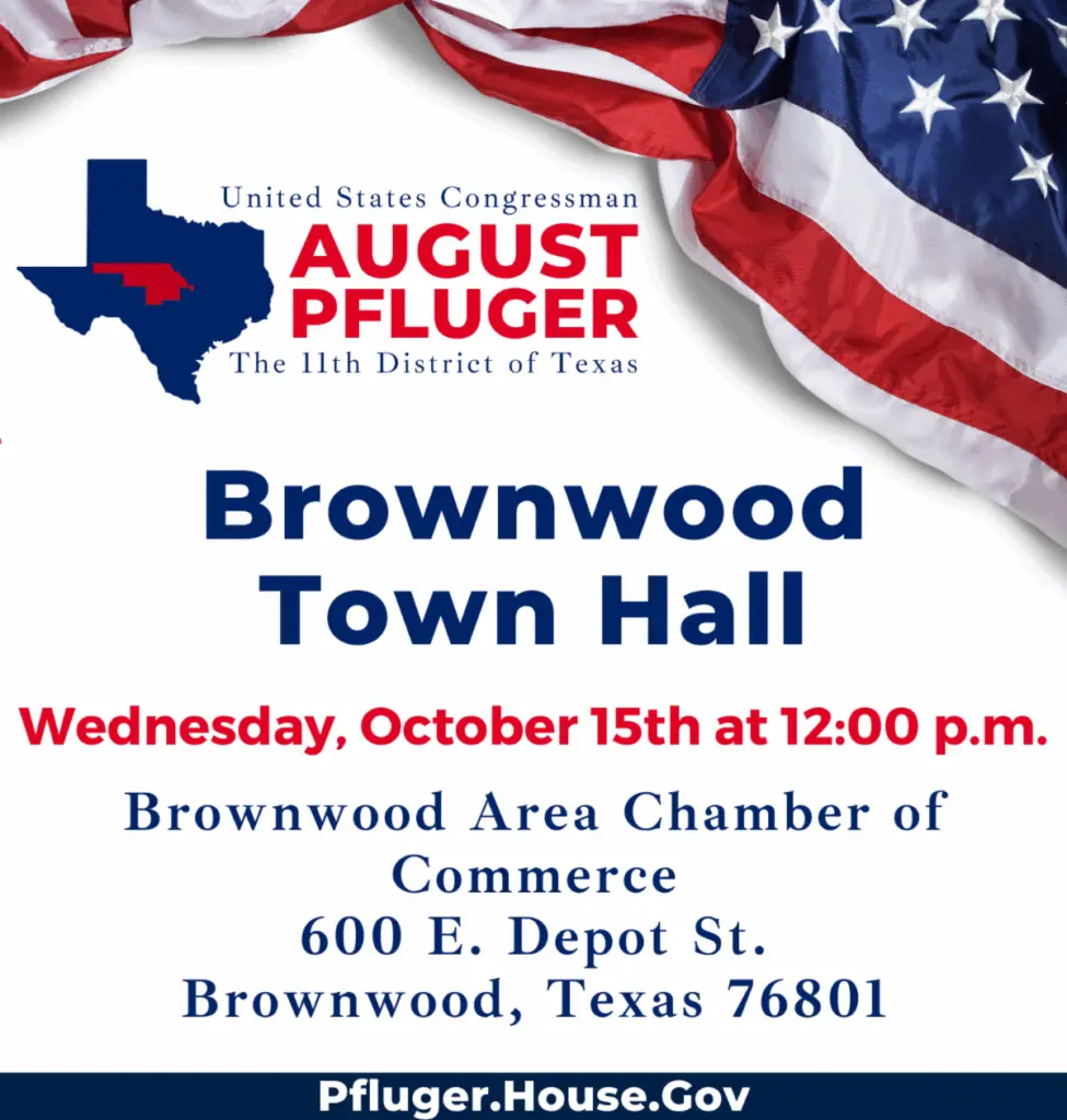 U.S. Congressman August Pfluger (TX-11) will hold a community town hall in Brownwood. The event is open to the public .