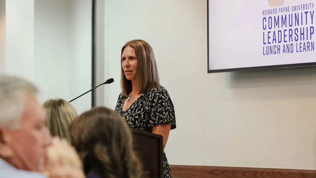 Howard Payne University recently hosted its Community Leadership Lunch and Learn on campus for local business leaders. Attendees enjoyed a meal and heard from guest speaker Tammy Gray, director of facilities for Brownwood ISD, who shared insight on successful project management.