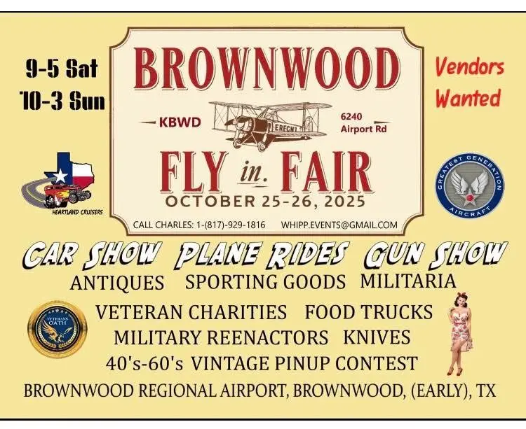 The skies over Central Texas will come alive again as Brownwood Regional Airports host the third annual fly-in fair set to land on October 25th – 26th. This will be a celebration of history, community, and aviation.