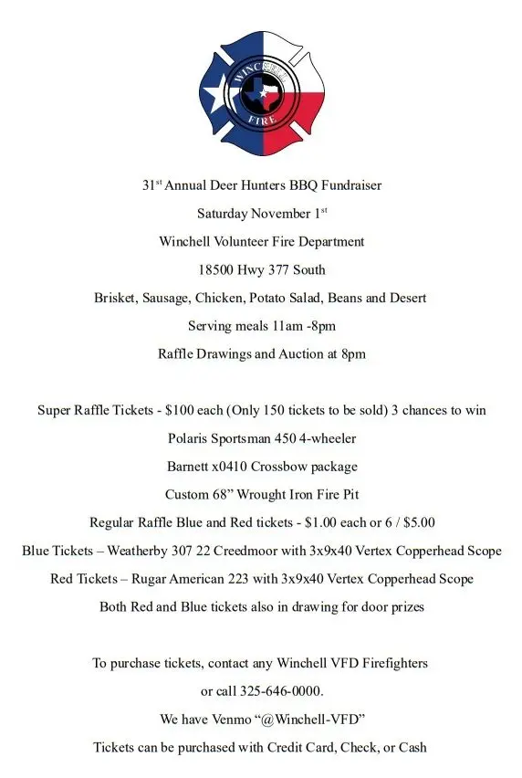 Winchell VFD 31st Annual Deer Hunters BBQ Fundraiser Nov. 1