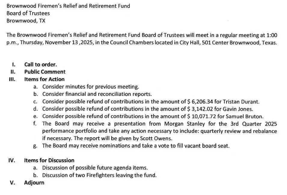 Fireman’s Relief and Retirement Fund Board of Directors to meet Nov. 14 November 5, 2025 at 9:42 am Derrick Stuckly Local News Tweet Share Reddit +1 Pocket LinkedIn