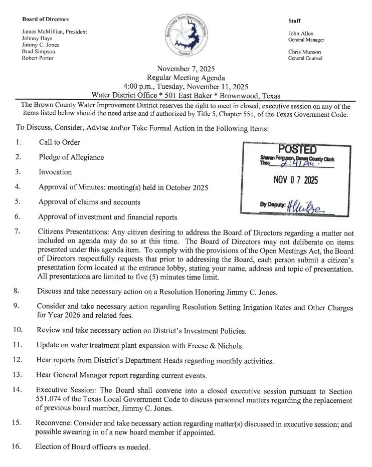 Brown County Water Improvement District board to meet Nov. 11 November 9, 2025 at 7:22 am Updated: November 9th, 2025 at 8:07 am Derrick Stuckly Announcements Local News Tweet Share Reddit +1 Pocket LinkedIn