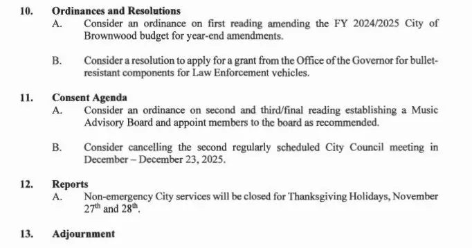City Council meeting slated for Nov. 25 November 19, 2025 at 12:12 pm Updated: November 20th, 2025 at 6:33 am Derrick Stuckly Announcements Local News Tweet Share Reddit +1 Pocket LinkedIn