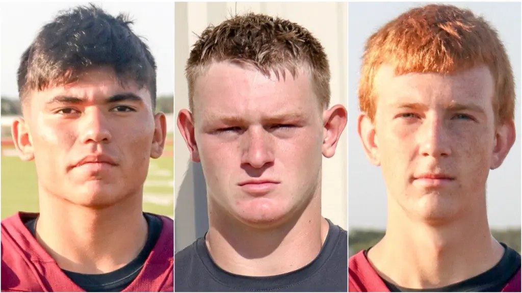 Superlative award winners in the district were (from left) Zephyr’s CJ Byers as Defensive Player of the Year, Blanket’s Kannon Kensing as Offensive Player of Year, and Zephyr’s Quayde Heard as Newcomer of the Year