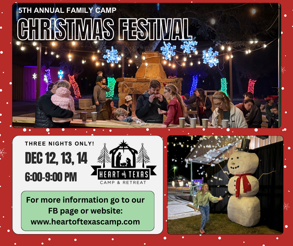 Heart of Texas Camp Christmas Festival set for Dec. 12-14 December 8, 2025 at 10:55 am Derrick Stuckly Local News Tweet Share Reddit +1 Pocket LinkedIn