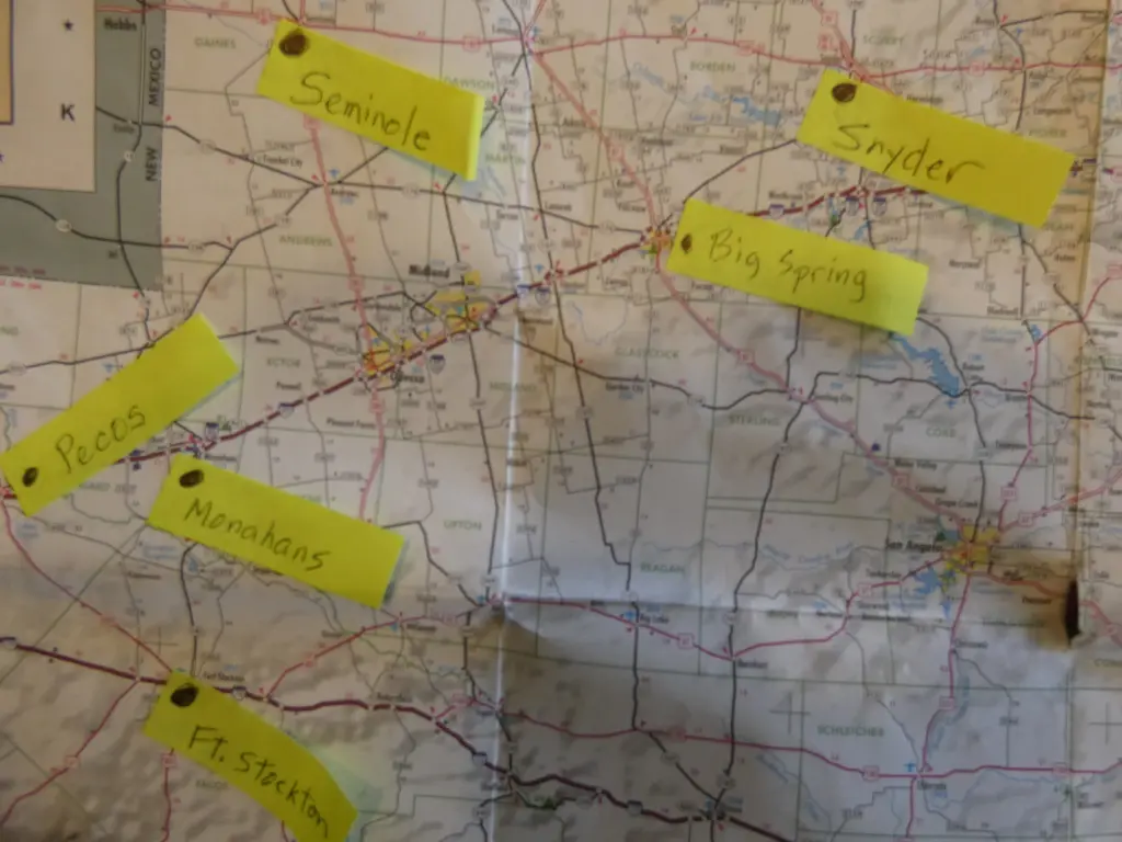 The title photograph above shows a map where I have marked all 4A (2) schools in west Texas, north of us, and east of us. Let’s look west first.