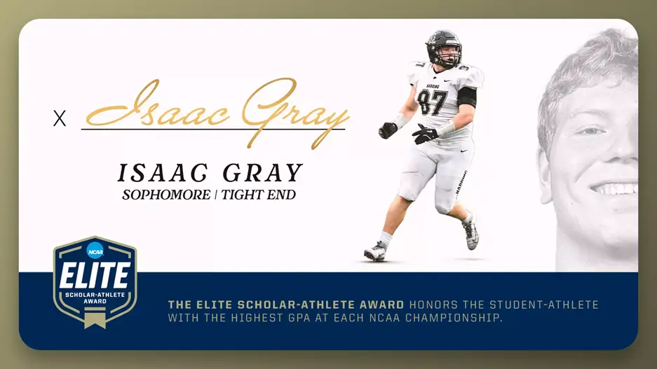 The Elite Scholar-Athlete award recognizes the essence of student-athletes by honoring the individuals who have reached the pinnacle of competition at the national championship level in their sport, while also achieving the highest academic standard among their peers. The Elite Scholar-Athlete award is presented to the student-athlete with the highest cumulative grade-point average participating at the finals site for each of the NCAA’s championships.