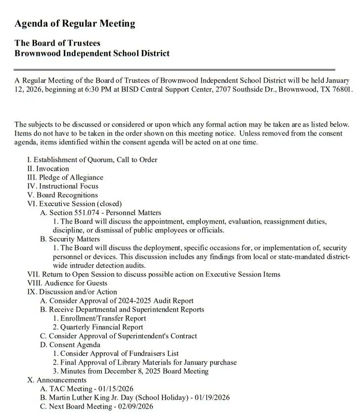 BISD Board of Trustees to meet Jan. 12 January 9, 2026 at 3:08 pm Updated: January 10th, 2026 at 2:46 pm Derrick Stuckly Announcements Local News Tweet Share Reddit +1 Pocket LinkedIn