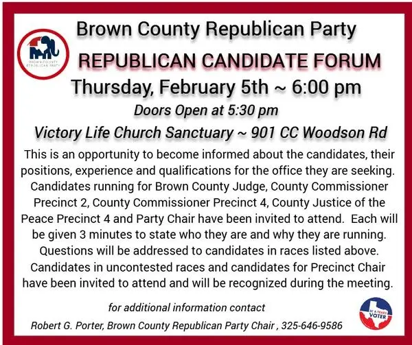Forum for March Primary candidates slated for Feb. 5 January 20, 2026 at 11:33 am Updated: January 21st, 2026 at 7:19 am Derrick Stuckly 2026 Brown County Elections Announcements Local News Tweet Share Reddit +1 Pocket LinkedIn