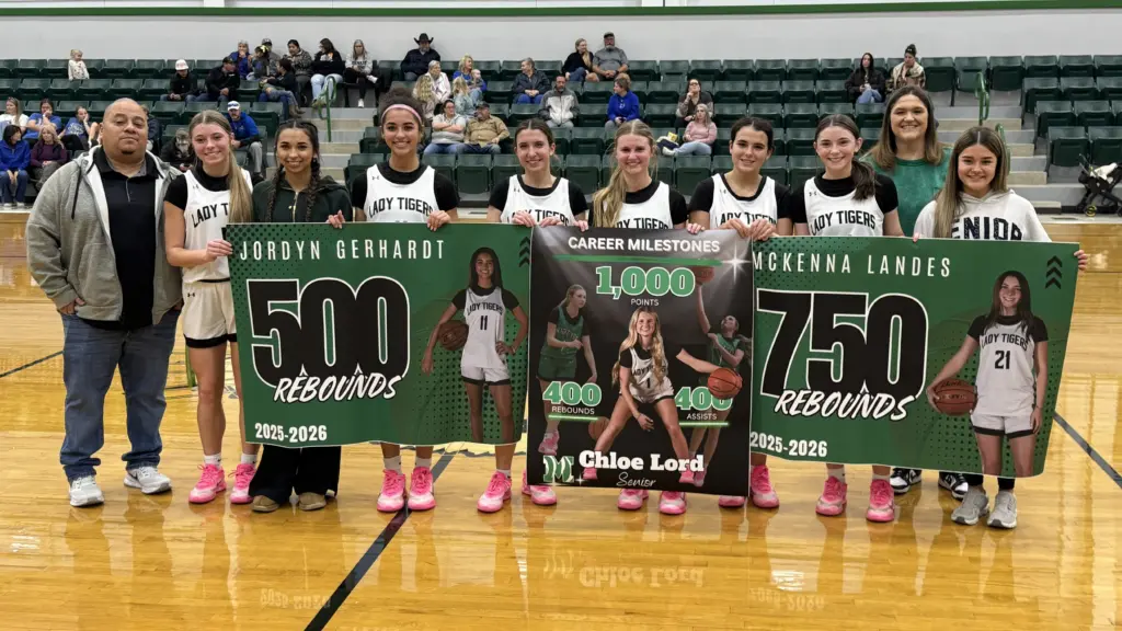 Lady Tiger Jordyn Gerhardt eclipsed 500 career rebounds while also scoring 45 points; Chloe Lord reached 1,000 points, 400 assists and 400 rebounds while pouring in 20 points; and McKenna Landes surpassed 750 rebounds and finished with four points.