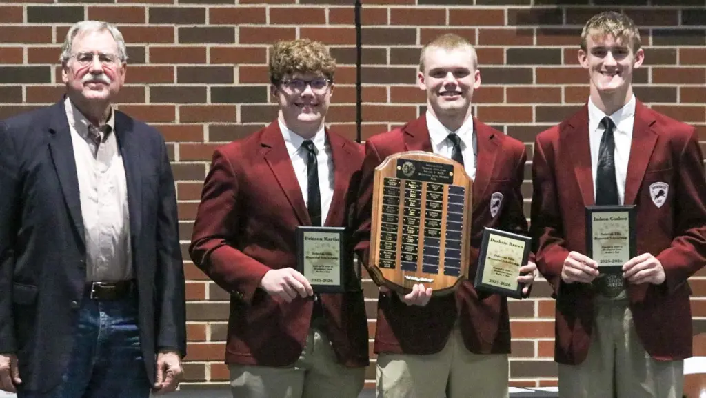 Delayed a week due to winter weather, three $2,000 Deborah Ellis Memorial Scholarships (Judson Coalson, Brinson Martin, Durham Brown) were presented, along with the Chris Hart Memorial Scholarship (Carson Noe), Leslie Adams Memorial Scholarship (Daylyn Ansons) and Heather Edmonds Heart of a Lion Award (Kadyn Avalos).