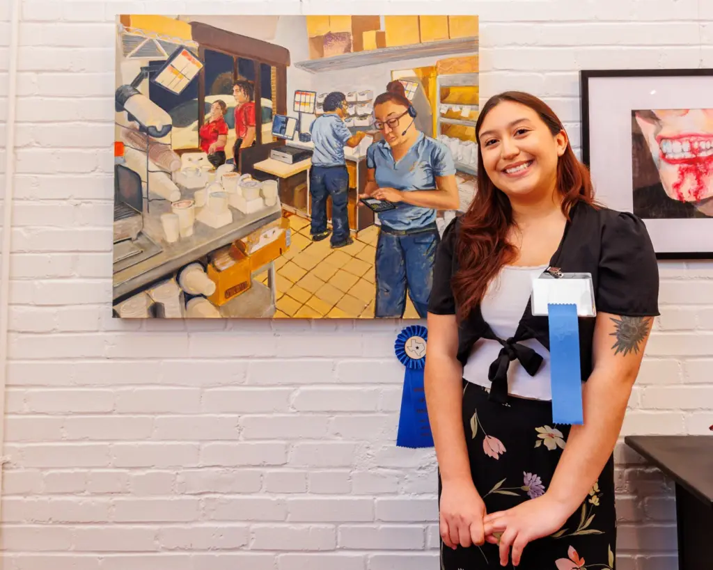 Artist Moon Ryan pictured with Wilson Family Young Artist Honorable Mention sponsor Charles Wilson