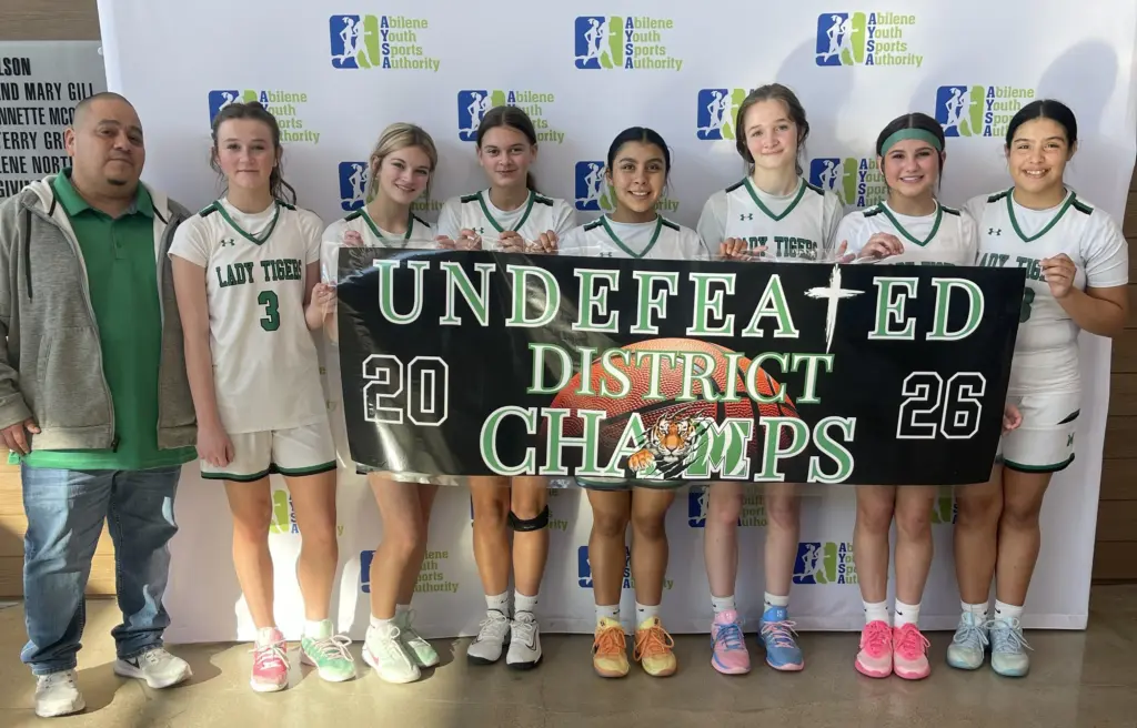 The May Junior High Girls Basketball White Team put together a season to remember, finishing the year undefeated. The squad rolled through district play without a single loss, securing an undefeated district championship and completing a perfect record for the entire season. Their success was also highlighted by a championship win at the Meridian Tournament. During the Jim Ned Tournament, they faced Class 3A opponents in pool play and won the three games they played.