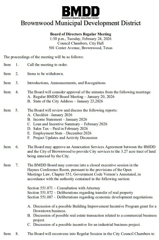 BMDD Board of Directors to meet Feb. 24 February 18, 2026 at 9:59 am Derrick Stuckly Local News Tweet Share Reddit +1 Pocket LinkedIn