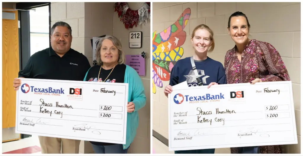 Brownwood High School (BHS) has recognized their Teacher and Staff Member of the Month for February 2026. Teacher Stacci Hamilton and staff member Kelley Eddy were selected to receive the honor. The recognition includes a $200 check sponsored by TexasBank and Demand Staff, Inc.