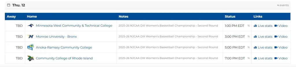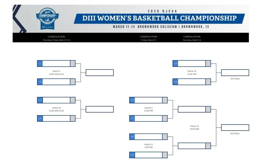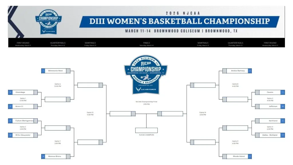 Brackets set for NJCAA DIII Women’s Basketball National Championship tournament at Coliseum March 11-14